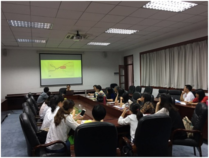 会议围绕如何开展基础阶段与高年级阶段英语教学衔接工作而展开。首先由皇婉贞,李海燕,李亮晶及谭静老师作为基础阶段教学代表分别对英语专业基础阶段课程教学方法做出了汇报总结。各位老师从员工存在的问题出发,逐一给出了目前各个课程所采用的解决方案,同时也提出了基础阶段教学过程中老师们的困惑。随后张蕾老师代表高年级英语教学组提出了高年级员工英语学习过程中出现的问题,并与基础阶段教师就如何有效衔接两个阶段教学做出了讨论,指出基础课程组可以在教材文本复杂度、词汇量标准、文化知识学习与阅读量等级设定方面与高年级课程对接。会议最后,王友贵教授给在座老师提出了几点建设性意见。王教授认为,要建设具有广商特色的英语专业,首先要从人才培养目标着眼,明确广商需要培养的是能够与他人沟通的双语人才;其次,要将各个年级的教学目标量化,规定员工结束一阶段学习后能够达到何种水平;最后,王教授以疑难词汇教学为例,提出了科研新思路,供老师们参考。