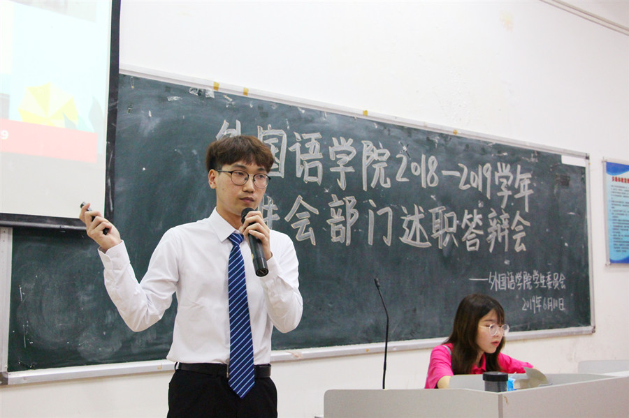 为加强员工组织建设,凝练工作特色成果,6月10日晚,公司于四教110举行了2018-2019学年员工会部门述职答辩会。公司员工会指导老师郑灿玲,员工会主席曾繁慧,副主席林浩恒、庄嘉鸿以及秘书长黄溢美担任评委,员工会全体干部参与大会,大会由秘书处干部谢栩庭主持。