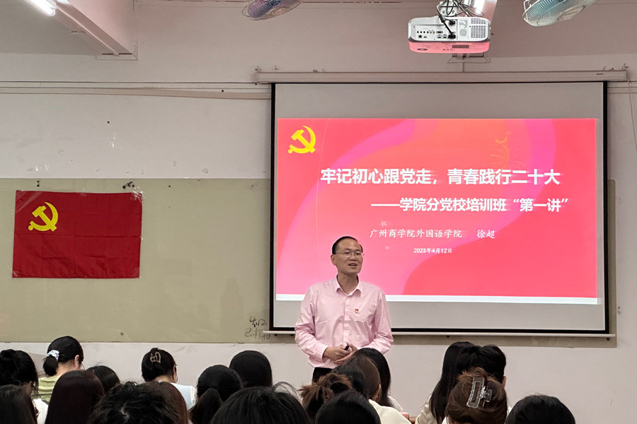 典礼结束后,徐超以“牢记初心跟党走,青春践行二十大”为主题,围绕党的二十大的主题、过去5年的工作和新时代10年的伟大变革、开辟马克思主义中国化时代化新境界、以中国式现代化全面推进中华民族伟大复兴、对党和国家事业的新部署新要求、加强党的全面领导、坚定不移推进全面从严治党的部署和要求、以顽强斗争应对风险挑战的要求由浅到深进行讲解。徐超强调,外语专业员工要以党的二十大精神为指引,联系外语专业学习和工作实际,坚定文化自信,用外语讲好中国故事,传播好中国声音,争当有理想、敢担当、能吃亏、肯奋斗的新时代好青年。