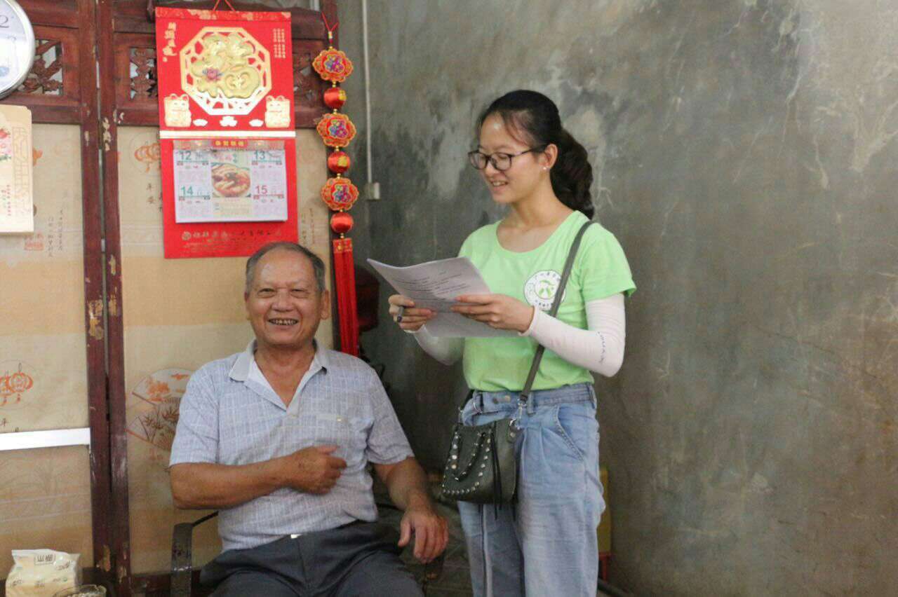 此外,外出调研的志愿者们也毫不懈怠。他们兵分两路,走访村落上的每家每户,村民们不仅耐心地完成我们书面上的问卷调查,相比前两期关于新铺镇古村居的开发与利用的情况等主题调研,村民似乎对于“客家传统风俗”这一调研主题更富有兴致,在给予志愿者们大力的支持和鼓励的同时纷纷补充自己对于自家传统习俗的看法。殊不知,客家传统文化种类繁多、意义深远。在与新铺村民们的交流互动过程中,志愿者们不仅可以较为了解和学习到客家传统风俗蕴含的深刻意义,也在交流中传播了发扬优秀传统习俗的必要性。