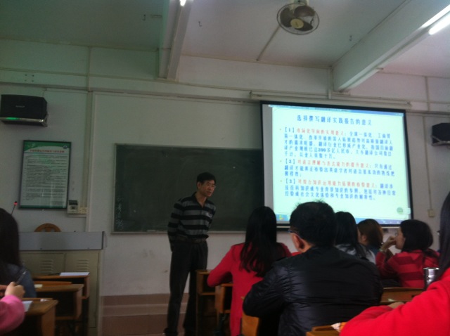 曾利沙教授有着丰富的翻译教学经验,在翻译理论和实践方面都有非常高的成就。在此次讲座中,曾教授主要就2011级英语专业的同学们的翻译报告的撰写过程中出现的难题进行了解答,并分析了本科生在翻译实践过程中普遍存在的问题,最后他在如何指导和修改翻译报告的问题上也给了在座的各位论文导师若干建议。