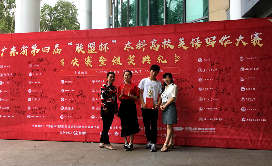 6月24日,2017年广东省第四届“联盟杯”本科高校英语写作大赛的决赛在华南理工大学举行。在领队老师潘文晗,指导老师伍彩芬和范俊英的带领下,公司共有两位同学参加了此次决赛。