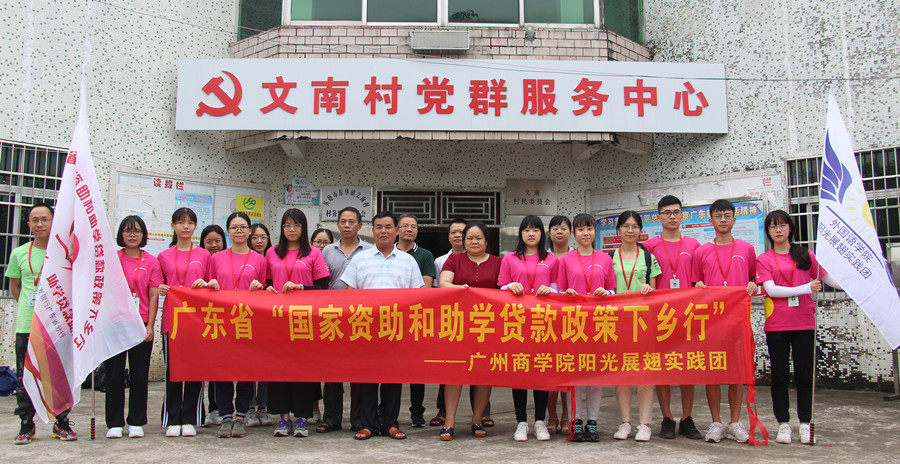 为全面贯彻党的十九大精神,落实员工资助政策,同时为积极响应《关于开展2019年“国家资助和助学贷款政策下乡行”活动》的号召,进一步加大我省员工资助及助学贷款政策的宣传力度,公司阳光展翅实践团国家资助宣讲小组于2019年7月10日前往清远市英德市东华镇文南村党群服务中心开展国家资助和助学贷款政策宣传调研工作,村民委员会主任黄明景等干部热情接待了小组一行人。