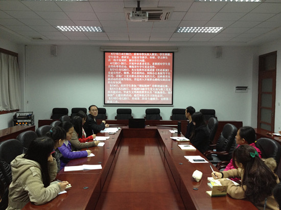 为深入开展党的群众路线教育实践活动,我系于3月12日12:15,在第二行政楼308召开动员大会。外语系党总支书记徐超、10级辅导员刘万里、11级辅导员刘丽萍、12级辅导员黄玉亭、13级辅导员雷肖茹、各员工党支部委员及三大组织核心干部参加了会议,会议由徐超主持。
