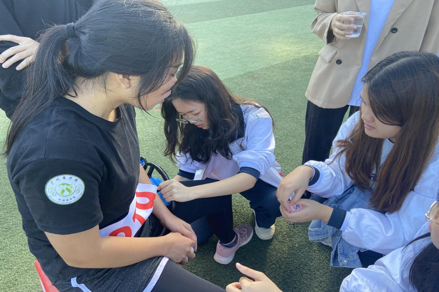运动会期间,19级员工党支部的志愿者们统筹安排、分工协作,为师生运动员提供方便,为他们做好后勤服务和医疗保障,保证运动员的正常发挥。在服务点上、操场里,志愿者的身影无处不在、全程守护,他们为运动健儿们加油鼓劲、为他们抓拍定格美好瞬间,陪运动员们一起冲刺,并在比赛结束后及时递上一杯温热的葡萄糖水,为他们捏腿缓解肌肉的酸痛,他们的热情服务给大家留下了深刻印象,赢得了师生的认可和好评,为运动会的顺利进行贡献自己的微薄力量。