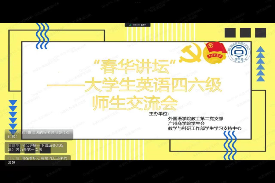 为发挥党员先锋模范作用,深入开展“我为群众办实事”实践活动, 3月3日晚上,伟德国际1946教工党支部、校员工会和员工学习支持中心联合主办 “春华讲坛”之大学英语四六级考试专题经验交流会,通过钉钉直播平台为即将举行考试的同学加开专场,帮助公司员工备考大学英语四六级考试。本次听力与阅读专题经验交流会由伟德国际1946教工党员李卓华担任主讲教师。