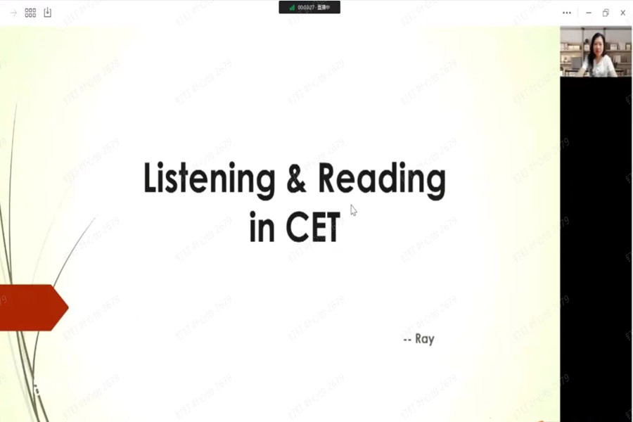 在交流会上,李卓华首先针对听力和阅读两种题型各个部分的出题特点、难点详细讲解了相应的答题技巧和备考策略。交流会最后设有问答环节,李卓华耐心解答同学们在线提出的问题,提出备考和冲刺应对的建议,取得很好的反响。