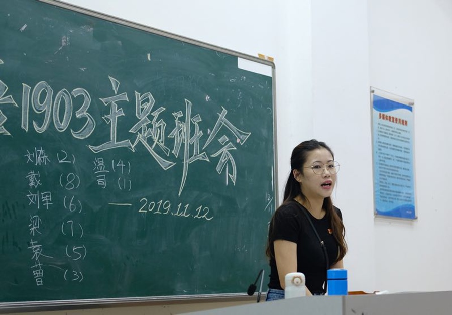 班会的最后,辅导员伍思颖老师做了相关总结与延伸,呼吁大家认真学习不耻下问、加强体育锻炼、学会调整心理状态等等;相信同学们对老员工活也有了等明确的目标,但枝叶仍需靠每位同学日复一日的摸索与前行,把握好大学里的每一天,方为不负韶华。希望2019级英语、德语专业的员工都能实现德才兼备,为更好地成为社会主义接班人做准备,从而推动伟大中国梦的实现,这将是同学们的永远的大主题。