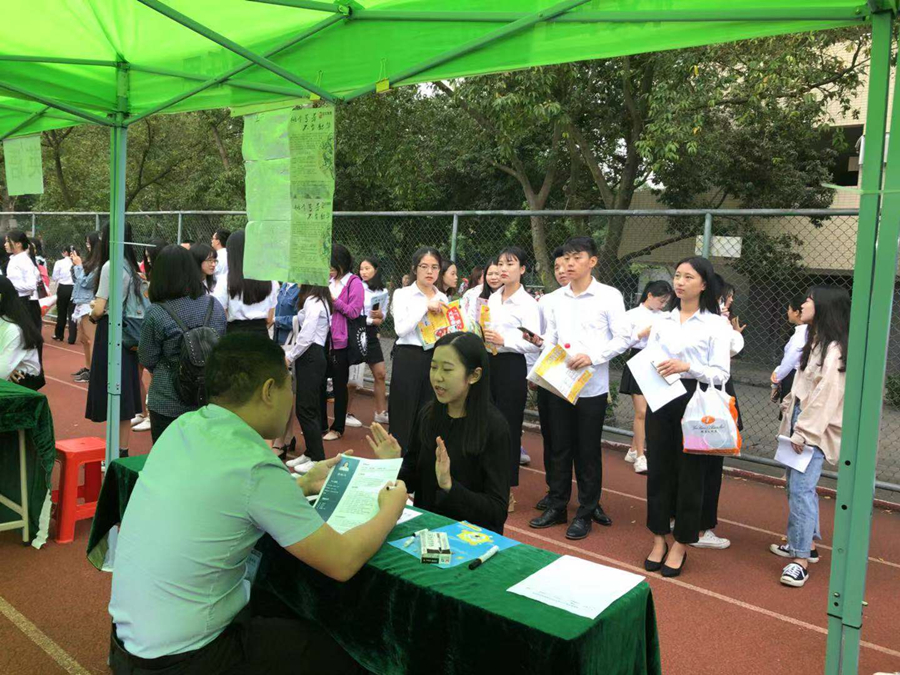 上午9:00招聘会正式开始。各招聘企业的大本营的应届毕业生络绎不绝,现场气氛十分活跃。各摊位吸引来了不少应届毕业生前来面试,招聘会如火如荼地进行。各企业负责人从关于我们、企业文化、企业目前的发展状况及发展前景等方面对应届毕业生作了详尽的分享。同时应届毕业生认真参考对比,结合自己的职业生涯发展规划寻求合适的岗位投递简历,并对企业所需求的人才素质、公司发展平台与机会等问题与面试官们进行了互动交流。下午各企业分散在教室进行宣讲并举行第二轮的笔试环节,为企业和毕业生的双向选择提供更多的机会。