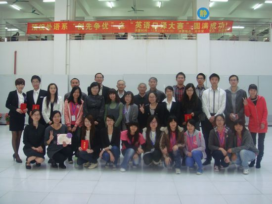 2010年12月23日下午,外语系首届口译大赛决赛在同传室隆重拉开帷幕。外语系胡光忠主任、徐超副主任出席本次决赛。刘精香教授、马静副教授、黄安洋副教授、余新兵老师与张蕾老师担任此次大赛的评委。