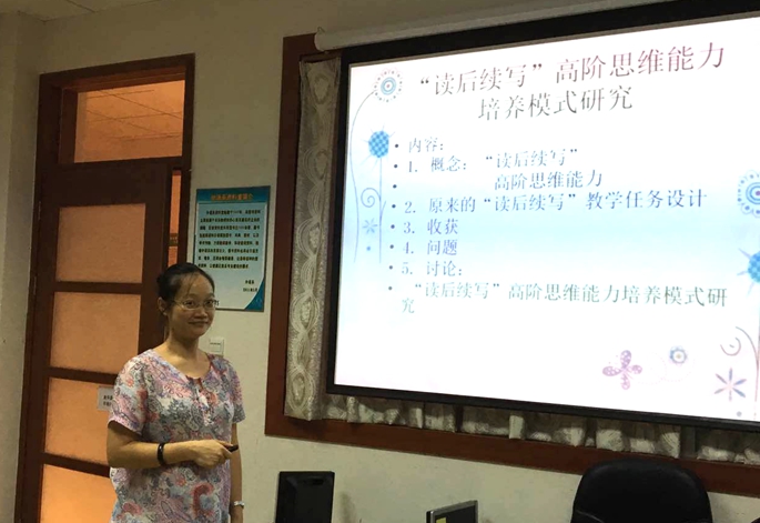 “读后续写”模式首先由广东外语外贸大学王初明教授提出,近几年在英语教学领域发展得如火如荼。袁楚娜老师从该种教学模式的发展目标入手,继而分享了过去两年运用该教学模式取得的成果以及存在的问题,最后与老师们就“读后续写”教学模式的多样化和反馈细则进行了细致热烈的讨论。袁老师在讲座中指出,“读后续写”模式不仅要求员工能够实现从模仿语言到自由运用语言的转变,更重要的是在此过程中培养员工的高级思维能力----分析,评价,创造。同时,袁老师也提出了实施过程中遇到的一些问题,例如如何根据文秋芳教授提出的思维能力评价标准进行量化评价,如何测量员工的高阶思维能力是否有所发展。