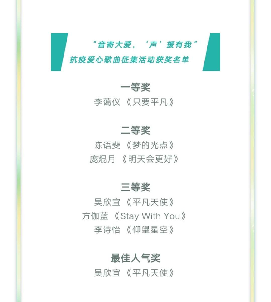 抗疫爱心歌曲征集活动不仅表达对抗疫英雄的致敬,同时也激发员工爱国爱党的热情。线上活动给予了员工们一个可以展示个人风采,尽显独特才艺的空间和平台。选手们用自己的歌声淋漓尽致地表达了对“逆行者”的致敬,同时用自己动人的的歌声俘获了许多观众的心,观众们也热情地为他们投下宝贵的一票。