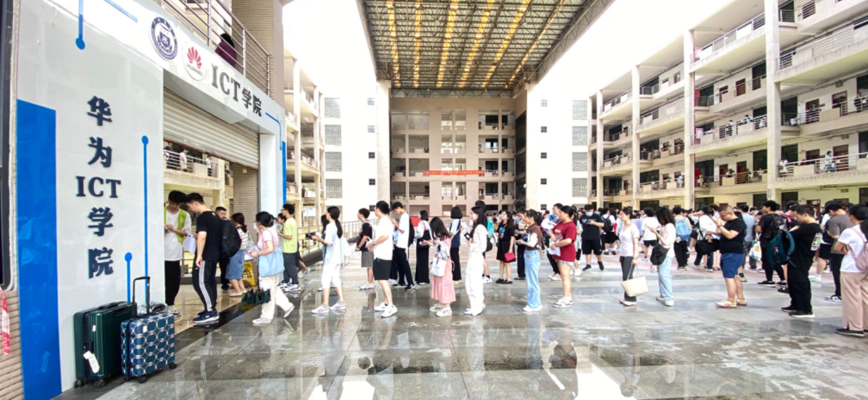 考生有序排队进行人脸识别