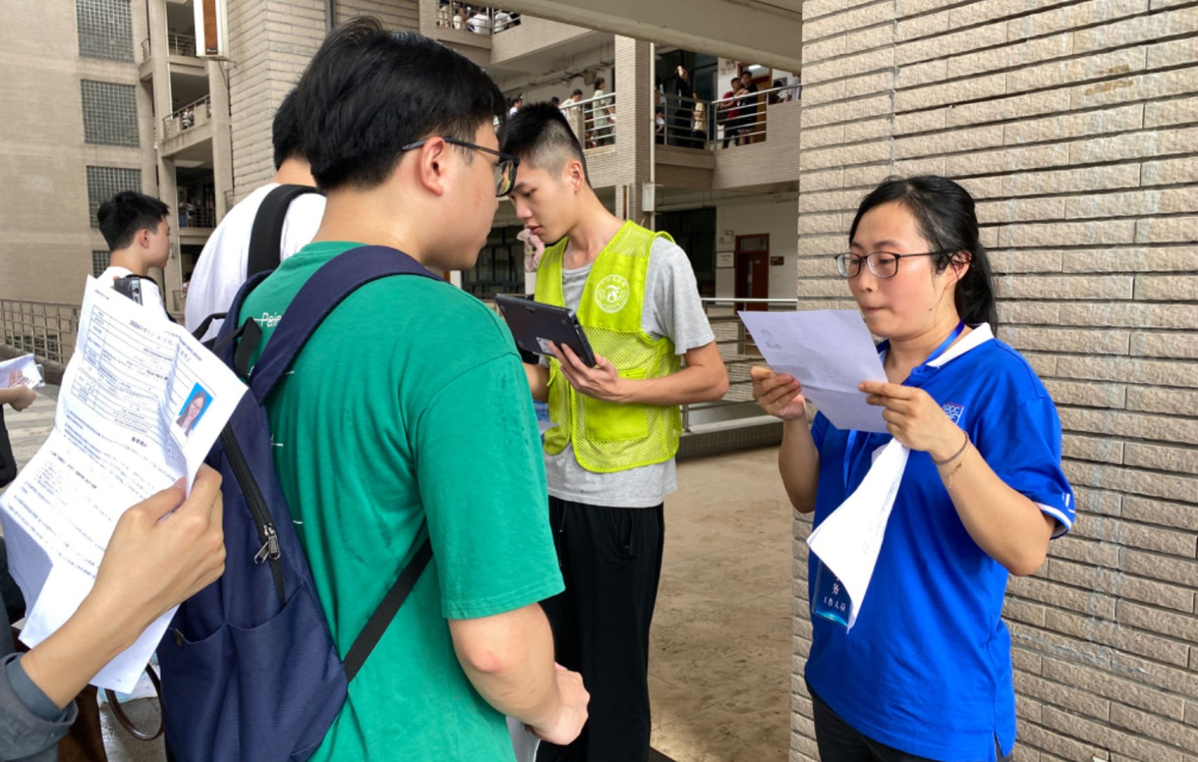 员工志愿者和考务人员严格进行考生人脸识别和信息核对