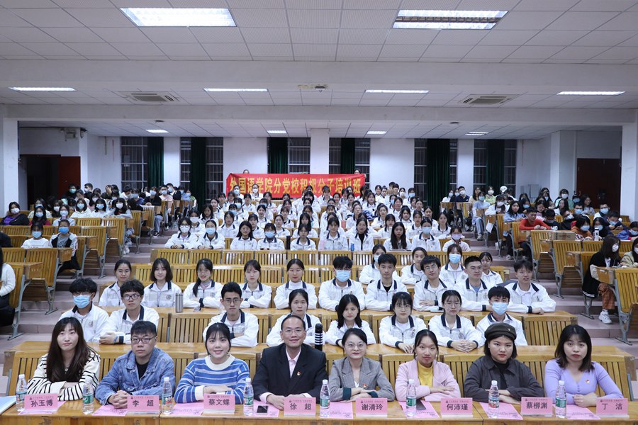 在慷慨激昂的国歌中,结业典礼正式拉开序幕。典礼上,全体成员一同观看了本期培训班的回顾视频,重温了培训班的学习课程、红色电影鉴赏、读书分享会等活动,展现了学员们昂扬向上的精神面貌,表达了学员们坚定不移的入党初心。接着,徐超书记向顺利结业的学员们表示热烈祝贺,并向学员们提出四点要求。首先,革命理想高于天。中国共产党从诞生之日起就把马克思主义写在自己的旗帜上,把实现共产主义确立为最高理想。我们党之所以能历经百年而风华正茂、饱经磨难而生生不息,就是因为内心中有强大的信仰,心怀坚定的理想信念。我们要坚定这份信仰、坚定这份信念、坚定这份忠诚。其次,主动学习贯彻党的十九届六中全会精神,用先进的理论武装头脑,提高思想政治觉悟水平。第三,“纸上得来终觉浅,绝知此事要躬行”,徐超书记勉励全体学员要进一步加强社会志愿服务,在思想和行动上入党,以实际行动践行“全心全意为人民服务”的宗旨。第四,进一步发挥先锋模范作用,党员不是一种荣誉或称号,而是代表服务与奉献的责任与担当。最后,徐超书记强调,培训班虽然告一段落,但结业不等于结束,在场积极分子要以终为始,把本次党课学习作为人生进步新的阶梯、自身成长新的起点,踏入新征程,满载起航。