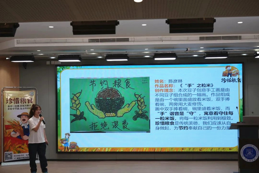 本次比赛在一段生动有趣的节粮视频的播放中拉开了帷幕。在主持人对此次演讲比赛的规则进行简单的介绍后,每个选手都意气风发,迈着自信矫健的步伐踏上了讲台。他们紧扣“粒粒碗中餐,不负好‘食’光”的主题,向大家介绍自己的作品,通过阐述自己的创作理念以及作品的创新点,讲述自己对节约粮食的看法,向大家发出了节约粮食的号召。