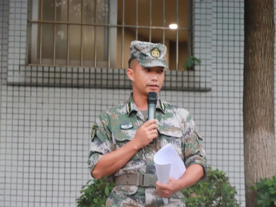 活动伊始,教官团第五营营长卢教官向新生们介绍第五营全体教官,紧接着,他详细地向新生们说明了军训期间的各项要求,着重强调同学们在军训时身体如果出现不适的状况要及时向教官汇报,最后,卢教官希望全体新生们能够克服军训期间遇到的困难,顺利地完成为期14天的军训任务。