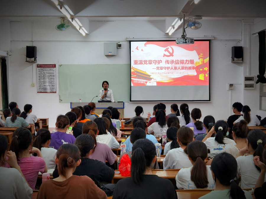 会议伊始,谢清玲老师以2017年习近平总书记在参观上海中共一大会址时仔细端详一本《共产党宣言》为切入点,从生平简介、衣冠冢的秘密等六个部分讲述了党章守护人张人亚同志如何在艰苦卓绝的环境下舍生忘死守护党章和中共一大、二大珍贵文献文物的故事。出生于浙江霞浦镇的张人亚1921年就加入了中国共产党,他在极其严重的白色恐怖下先后辗转上海、芜湖、瑞金等地,出色地完成了党交给他的秘密任务,给中外不良势力以沉重的打击,也为后人留下了宝贵的精神财富。通过重走张人亚同志的革命路,谢老师号召在场入党积极分子学习张人亚同志百折不挠、矢志不渝的坚定信念;舍生忘死、一心为党的忠诚本色;不畏艰险、勇挑重担的担当精神和襟怀坦荡、严于律己的高尚品质,做到坚定共产主义信仰,勇抓新时代新机遇,把视线投向国家发展的航程,用奋斗淬炼青春之旅,让青春在党和人民最需要的地方绽放绚丽之花。