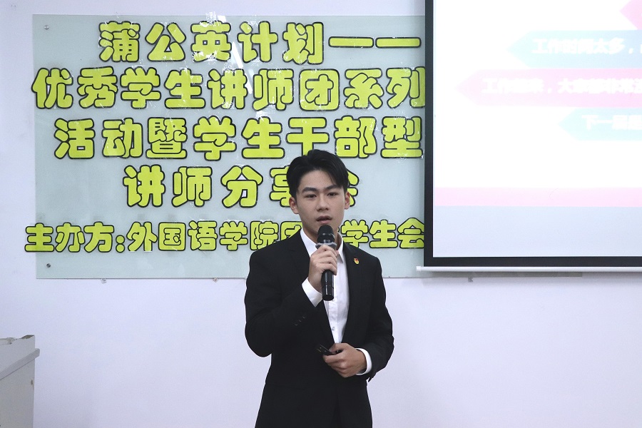 紧接着,陈文政从“疑惑与思考”和“体验与收获”两个角度向我们分享。他向同学们展示了自己在生活中的不同面貌,解答了员工干部中最常见的四个问题;希望同学们能自觉提升自己的抗压、学习及团队协作能力,在工作中收获到真挚的友谊。
