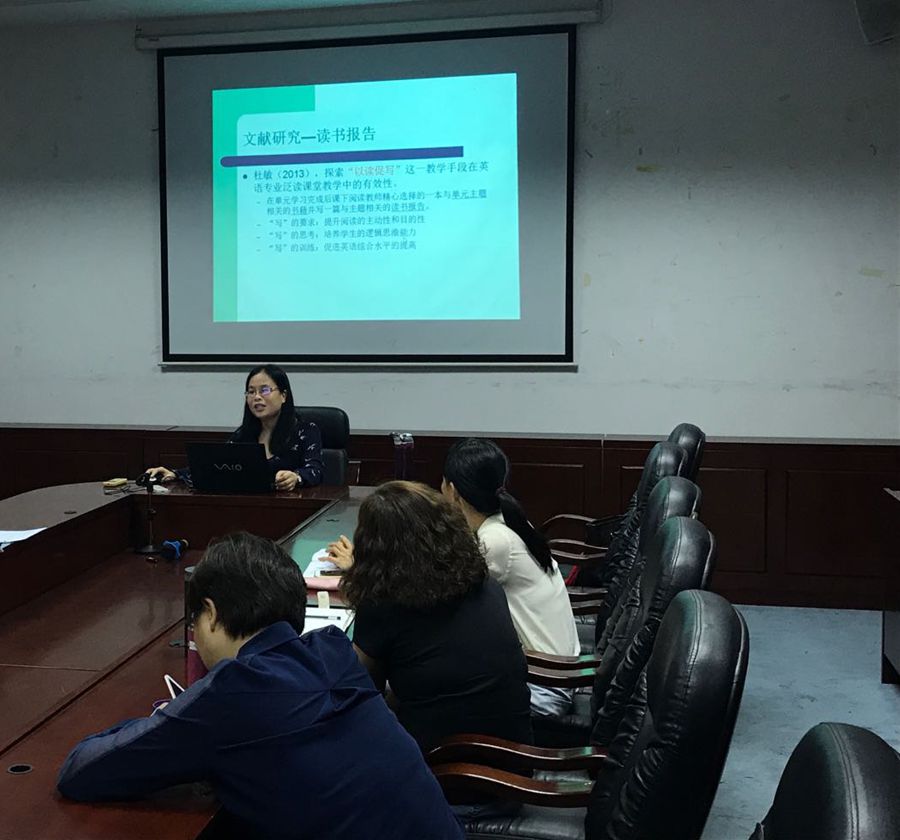李老师指出英语专业低年级阅读教学存在员工阅读习惯差、阅读量小,教师考核与监督方式效率差、工作量大等问题,对于阅读课改革的相关文献进行的整理,她将与英语专业阅读教学相关的文献分为三大类:同伴协作、网络资料库和读书报告。李老师接着重点总结了她近几年上课采取的阅读报告的方法和:为员工提供阅读的指定书目与自选书目,阅读后进行口头报告,提交书面报告,作为平时成绩的重要组成部分。在过程中发现员工概括能力不足、框架意识不够,需要老师更加更进一步的指导。