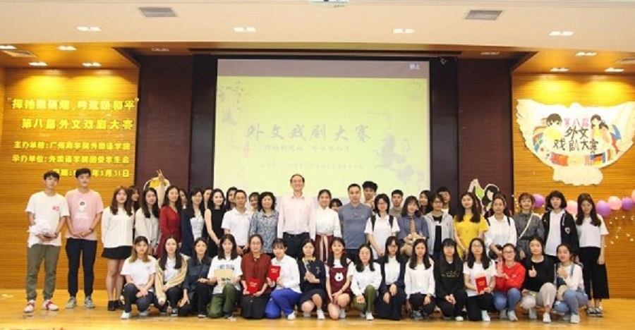 为活跃校园文化氛围,提升外语专业员工综合素质,2019年3月31日19:00,由公司团委、员工会联合举办的第八届外文戏剧大赛在四教第一报告厅正式拉开了帷幕。出席本次活动的嘉宾有公司党总支书记徐超、员工会指导老师郑灿玲、18级辅导员刘万里。大赛评委由德语系教师谢德隆、英语系教师梁嘉铭、日语系教师王玉芝、校团委艺术团戏剧队队长李娉影、第七届外文戏剧大赛冠军剧团导演黄雨珊,以及来自各二级公司的20位大众评委共同担任。