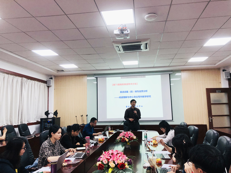 4月20日下午4时20分,伟德国际1946“商务英语学术沙龙”在第二行政楼308会议室举行第75期活动,专业负责人曾利沙教授进行题为“英语语篇(段)线性连贯分析——阅读理解与中心突出写作教学研究”的讲座。公司袁鑫副经理和商务英语专业全体教师参加本次沙龙。