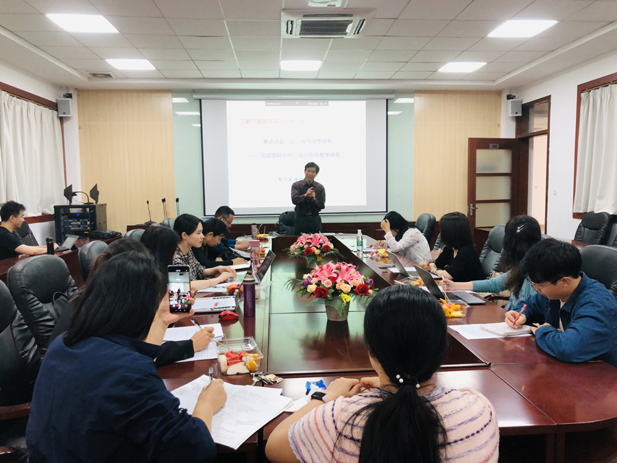 曾教授首先简单解释了“篇章”的理论概念,指出“篇章”是语义上的统一体,而“篇章分析”的研究对象就是句子在篇章中的用法和组句成篇的形式规律,研究语义连贯和中心突出。在语篇中,事件发展总是从一般到具体推进,曾教授介绍了自己设计的、以“事件链”为主线的语义结构分析模式,对于不同的事件层级进行标号,从而对语篇连贯进行量化和图式化分析,还可以对事件中作者视角、参与者行为和内心活动特征之间的内在关系的连贯性进行分析。在对英汉叙述体语篇进行对比研究时,尤其要关注隐性连贯的形态特征,这也是目前学术研究中少有人涉足的领域。然后,曾教授进一步介绍了篇章的“粘连性”的概念,即篇章中一个句子的信息结构必须反映出与它前面句子的联系,实际上就是指语义上的连贯。最后,曾教授带领老师们对几篇不同类型的说明文文本进行了段落连贯模式量化分析,如简单型语段模式和并列复合型语段模式,讨论该语段连贯性及线性发展模式的表征,发现所谓的“语篇连贯”体现出了明晰的“层级性过渡关系”,也就是说,在英文思维里,对某一核心概念的阐述通常从最概括、较概括、概括,再到具体、更具体的层级性过渡关系展开,信息之间语义连贯且粘连性强,与中文的思维方式存在较大差异。为此,曾教授还以某员工的作文为例,更直观地体现中文思维迁移产生的英文表达失误,由此强调,老师们在教学过程中应当注意员工英文思维的培养,尤其在阅读理解和写作课程当中,要注重语篇线性连贯思维的培养,才能有效帮助员工培养英文的线性思维,摆脱中式思维的限制。此外,曾教授还鼓励老师们可以在对比研究领域上进行相关学术研究。
