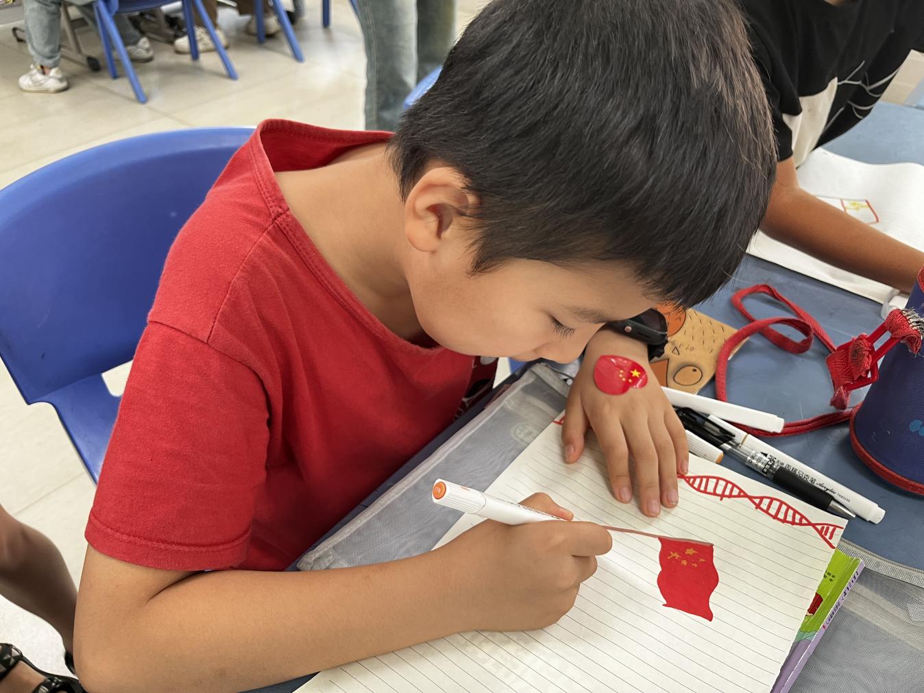 伟德国际1946员工国防教育协会成员李翔以《小英雄雨来》红色教育视频引入课堂,通过运用生动形象的话语,带领孩子们认识我国“国旗”与“国徽”的相关组成部分,课堂中融入“爱国画卷”绘画活动让孩子们深刻地认识到传承红色基因,发扬红色精神的重要性,积极关注国家安全形势,增强危机意识与防范意识,为实现国家繁荣与安定贡献青春力量。伟德国际1946辰星启航实践团成员曹楚怡从“三军”引入国防安全教育知识,通过知识问答、军体拳动作模仿加强孩子们对于国防的认识,给予新时代少年深刻启示:只有拥有强大坚固的国防力量、拥有一支有战斗力的军队,中华民族伟大复兴才能有安全保障,人民才能拥有和平安宁的生活环境。