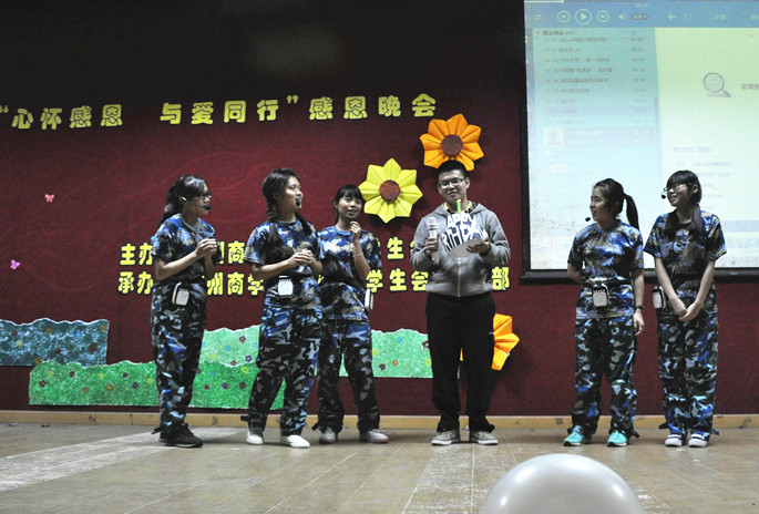 感恩,这两个普通的字,却包容着所有善良的心。感恩,这份平凡的感情,却道尽了世间一切哲理。在温馨感动的时光里,外语学子用歌声祝福公司的蓬勃发展,感谢她为广商人遮风挡雨;用舞蹈祝福是师长平安快乐,感谢师长的谆谆教诲和体贴照顾。