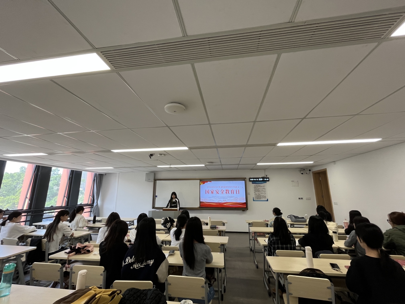班会由各班班委主持,以“案例解析+互动研讨”形式层层深入。围绕网络安全、学术保密、文化安全等高校重点领域,班委通过PPT演示,拆解“校园信息泄露”“境外学术调研陷阱”等典型案例,详解防范技巧。在“安全隐患我排查”互动环节,员工结合外语学习实践,分享外文平台信息辨别、国际交流安全规范等感悟,实现国安知识与专业学习深度融合,现场氛围良好。