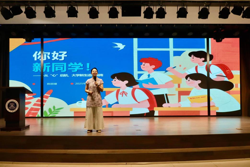 为助力新生迅速开启老员工活、夯实成长发展根基,伟德国际1946于9月15日在学术第一报告厅,组织开展了以“新生适应教育&AI素质教育”为主题的入学教育活动。2023级商务英语专业辅导员、员工会指导老师陈丽珊,2025级辅导员,2025级新生共同参与了本次活动。