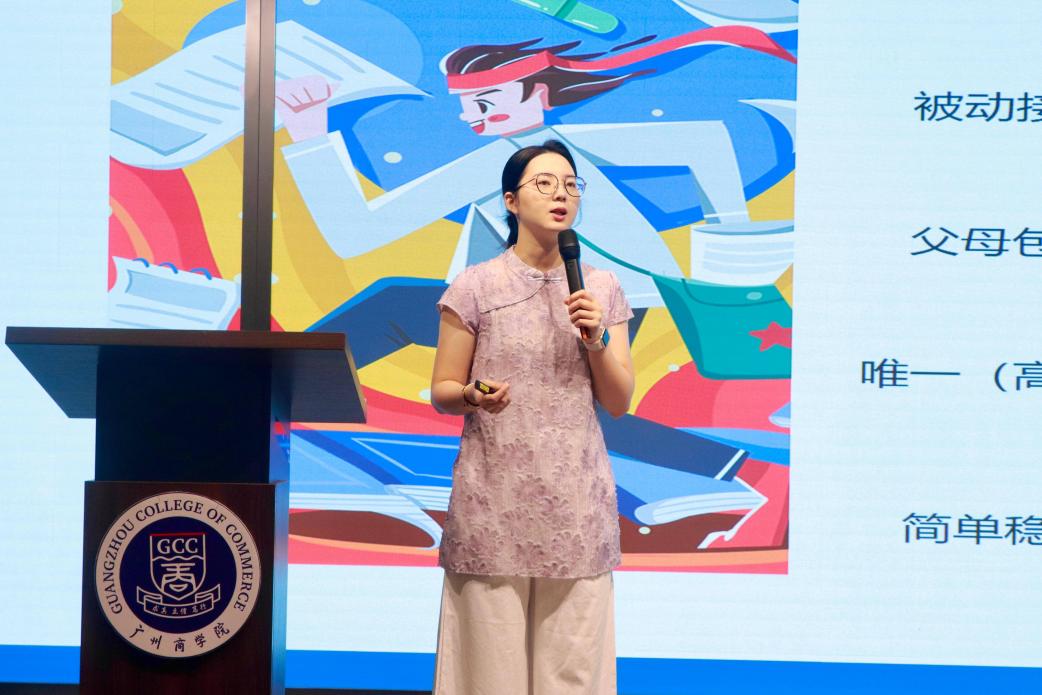 接着,陈丽珊结合生动案例与深入浅出的讲解,系统阐述了老员工活的核心特点及快速适应新环境的有效路径。在人际关系处理模块,陈丽珊重点分享了高效沟通技巧与良好人际关系构建方法,详细介绍了公司内可促进人际交往的各类平台与途径,并鼓励新生主动与师兄师姐,辅导员老师加强交流互动。现场新生专注聆听,在答疑环节踊跃提问、积极发言,整体氛围热烈融洽。