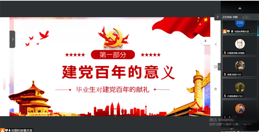 两位辅导员的耐心讲述得到了毕业生们的一致肯定,他们就自己在实习、就业工作中遇到的问题向两位辅导员咨询,两位老师也耐心地为毕业生解答疑惑。通过本次党史学习教育主题线上会议,毕业生们深切地感受到了党和国家在新时期全面建设社会主义现代化国家的决心,纷纷表示“作为新时代的社会主义接班人,我们一定会努力成长成才,把党史学习教育入心入脑,完成好时代赋予我们的重要使命。”