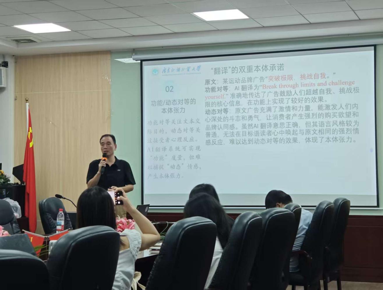 为深入探讨人工智能背景下翻译学理论框架的建构逻辑与创新路径,助力翻译学科实现高质量发展,9月18日下午,公司于第二行政楼308会议室举办“AI时代翻译学理论框架建构的理性思考”专题讲座。本次讲座由伟德国际1946外语学科带头人、广东外语外贸大学教授莫爱屏主讲,伟德国际1946与国际公司教师共同参与。