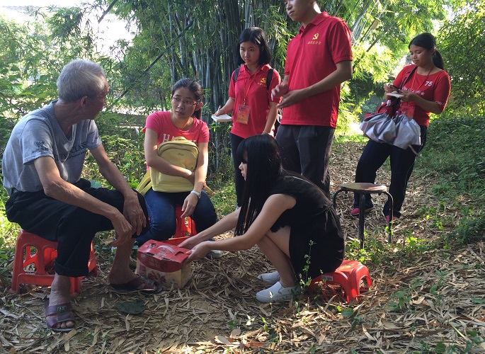 尊老爱幼是中华民族亘古不变的传统美德。为了继承和发扬中华民族的优良传统,让孤寡老人们感受到温暖。2015年10月24日下午14时30分,学习会外语系分会实践部和法律系分会实践部以及13、14级的学员共同携手,带着满满的爱心物资,怀着暖暖的爱意,来到汤村探访孤寡老人。
