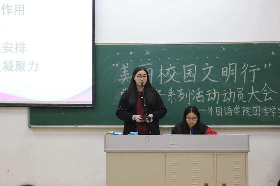课室卫生打扫及小广告清理工作作为每年度“美丽校园文明行”系列活动的重要项目之一,公司师生上下都相当重视工作。借本次“美丽校园文明行”学雷锋月系列活动动员大会之际,会议上,特对2016-2017学年第二学期中课室卫生打扫及小广告清理活动中表现突出的班级及个人进行表彰。同时也邀请了工作表现优秀的员工干部代表分享课室卫生打扫和广告清理工作的经验。其中16级商务英语3班董敏延从展示工作安排表、分享工作安排原则等方面分享了工作体会;16级日语2班杨捷认为介绍工作目的要清晰,安排工作要合理,细小繁杂的集体活动也能凝聚班级。紧接着,由自律委员会副主任冯心如介绍本学期伟德国际1946学雷锋月系列活动内容。主要包括:课室卫生打扫、小广告清理、宿舍卫生检查、自行车摆放和“美丽校园文明行”宣传活动等志愿服务活动项目。从课室到宿舍,从校内到校外,从个人到团体,伟德国际1946学雷锋月系列志愿活动行程满满。最后,徐超为本次活动发表了动员讲话,他要求,全院师生要深刻地领会雷锋精神的核心,信念的能量,大爱的胸怀,忘我的精神和进取的锐气;全院师生要树立“广商是我家,美丽广商靠大家”的主人翁意识,携手构建和谐校园,美丽花园和幸福家园。全院师生在最美的青春里努力奋斗,勤于学习,乐于钻研,勇于担当,热于奉献,实现个人梦,青春梦,中国梦。