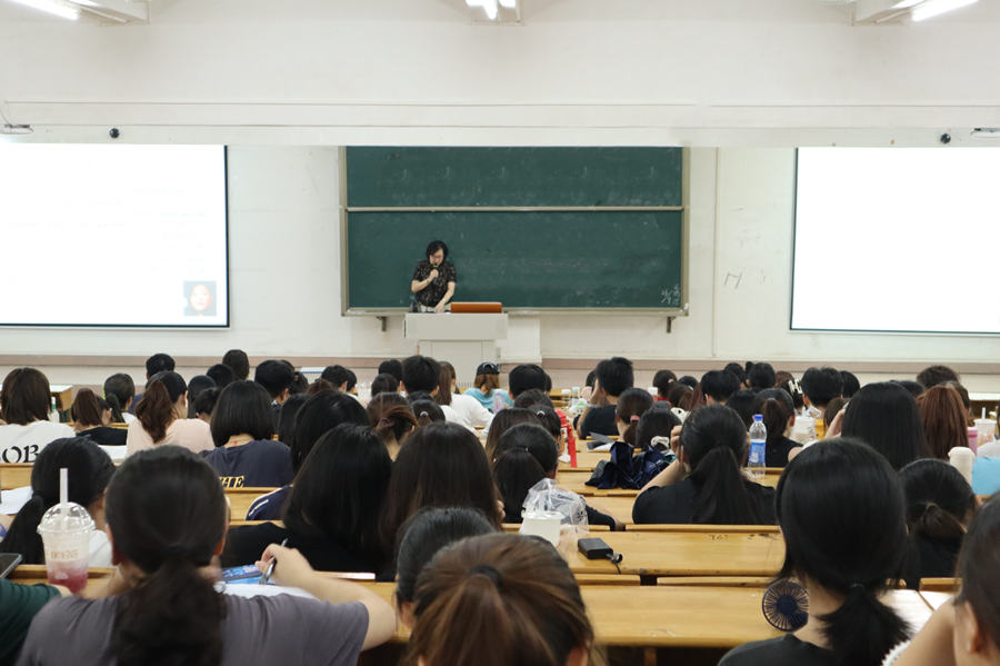 会议伊始,马蔚兰以习近平总书记提出的“世界处于百年未有之大变局,两者同步交织、相互激荡”的现状告诫同学们要与时代共振,不惧艰难地去迎接每一次挑战。紧接着以中国故事为核心,从抗击疫情、抗共同富裕、中国力量三个维度分别展开了详细事例分析。她从抗击疫情的角度分析了中美应对疫情的不同表现,并深入探讨了各种因素,包括两个国家在政治制度、经济制度、医疗体系、价值观等方面所存在的差异,向我们展示了中国以人民为中心的发展理念,这一理念提升了同学们对中国文化的自信和对制度的认同感。