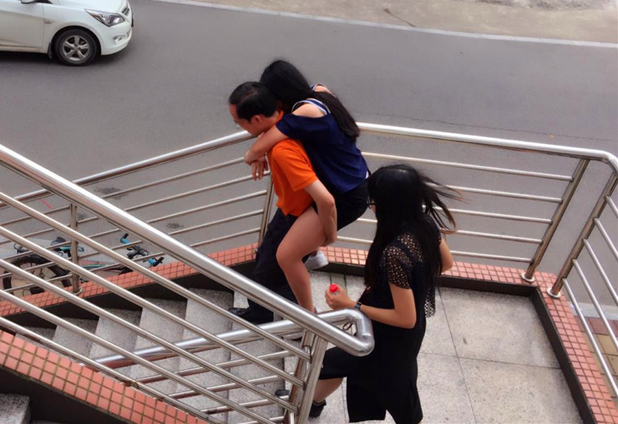 6月24日是公司2017届毕业生离校的重要日子,炎热的天气加上毕业临近难舍的情怀,公司一名毕业生在第二行政楼楼梯口晕厥,情况紧急之下,公司党总支书记徐超和辅导员黄玉亭第一时间伸出援助之手,将晕倒的毕业生快速背下行政楼,辅导员林蔚驾车送至公司医务室进行医治,医生对员工进行了急救处理,随后员工很快恢复了意识,没有出现其他不良反应。公司的老师们在紧急时刻,反应迅速,处理及时,体现出了政工干部队伍良好的整体素质与精神面貌。