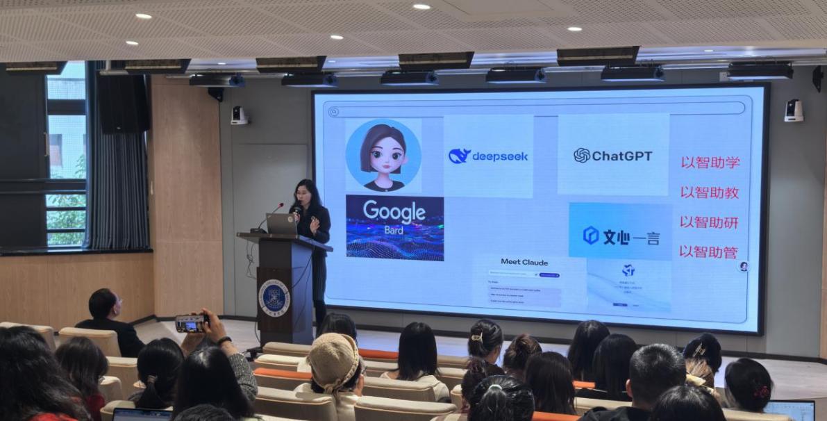 为帮助教师利用AI赋能外语教学,推动课程建设,提升教师的数字素养,2月20日下午,公司在第八教学楼203阶梯教室举办了AI技术赋能课程建设和教师数字素养提升专题讲座,讲座由伟德国际1946经理郭遂红主讲,伟德国际1946全体教师参与了讲座。