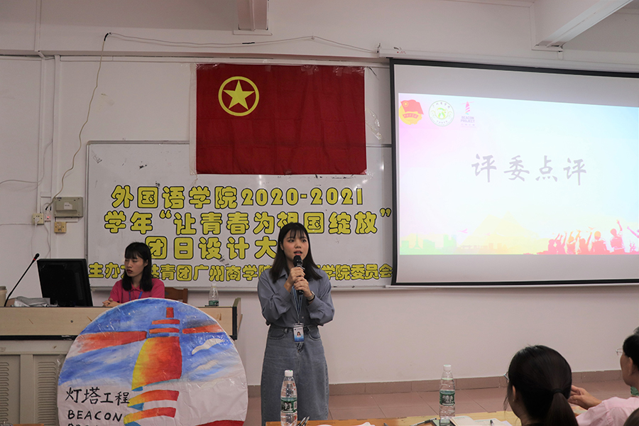 活动在激昂的团歌中拉开帷幕,接着由各团支部依次展示本次团日活动的设计方案。其中20级商英3团支部的设计方案中展示的以“一句话告白祖国”游戏表达了对祖国的热爱,还通过《国家》手语操来结束本次团日设计方案的展示。此次精彩团日活动演讲点燃了全场的爱国热情,赢得了现场观众的喝彩。