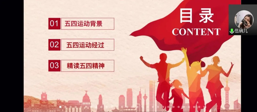 会议伊始,由伍思颖老师为团学干部讲授主题微团课,她通过结合五四运动的历史背景与经过,展示“爱国、进步、民主、科学”伟大五四精神;同时,伍思颖号召新时代的青年员工应该:一、为了民族的独立和解放,为了国家的繁荣和富强,前仆后继,英勇奋⽃,积极进取,勤奋⼯作;二、要努力学习科学⽂化知识,用科学的思想武器武装我们的头脑;三、勇于创新,为世界和平发展,⼈类社会的进步事业做贡献。