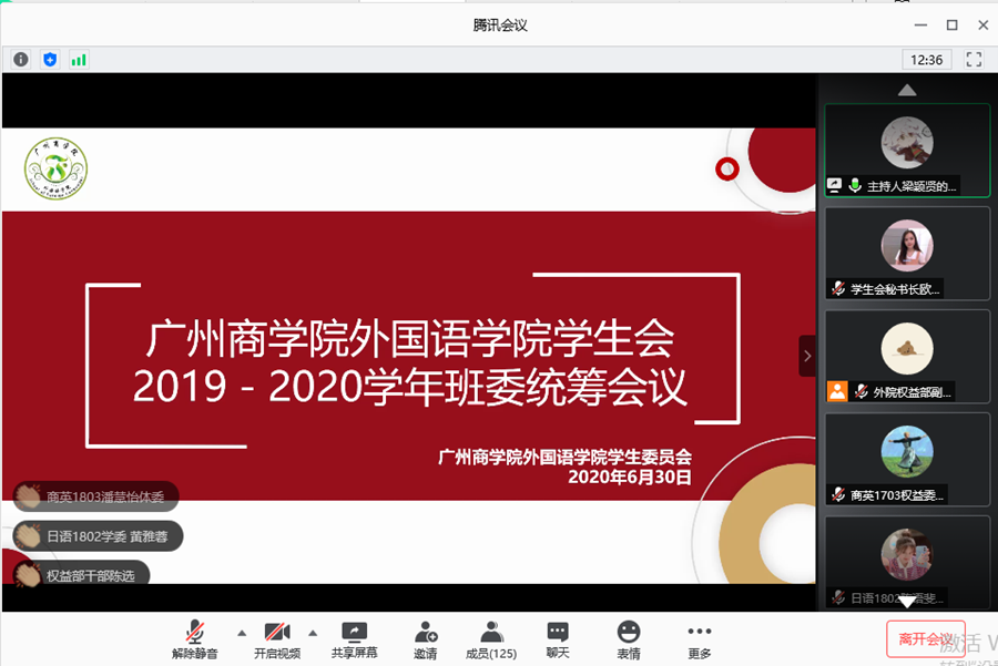 为进一步加强与班级之间的联系,让各班级了解到员工会各部门的年度工作情况,提高各班级工作积极性,公司员工会于2020年6月30日晚上19:00在腾讯会议平台上开展了伟德国际1946员工2019-2020学年班委统筹会议,参加本次会议的嘉宾有公司指导老师伍思颖老师、公司员工会主席团以及各班班委。