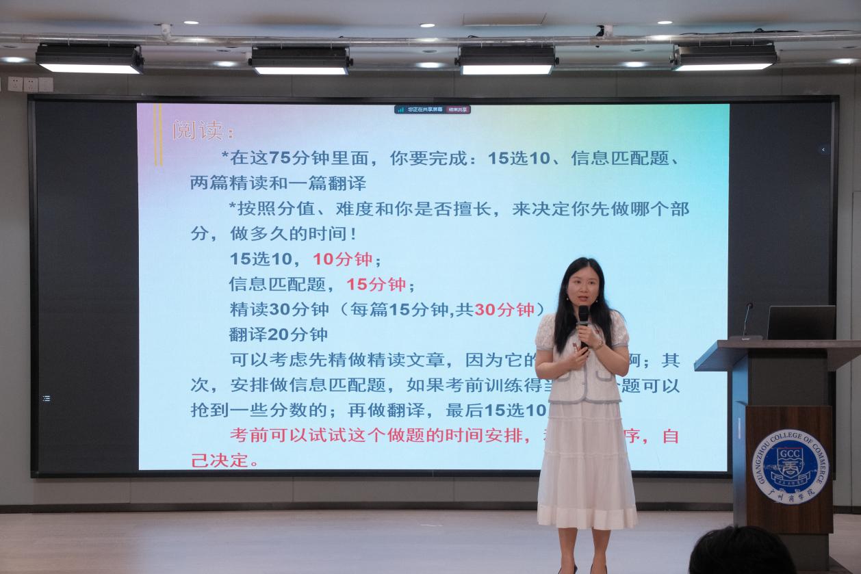 开场前,潘文晗对“春华秋实”讲座作了简要介绍。她指出,作为党建品牌活动,“春华秋实”讲坛延续了十多年的传统,始终秉持“服务员工”的宗旨,旨在帮助同学们科学备考、提升语言能力,体现了公司对员工学业发展的持续支持。在AI技术变革语言学习的背景下,本次讲座将结合最新命题趋势与实用技巧,为考生提供针对性指导,助力同学们高效通过考试并实现综合能力的提升。