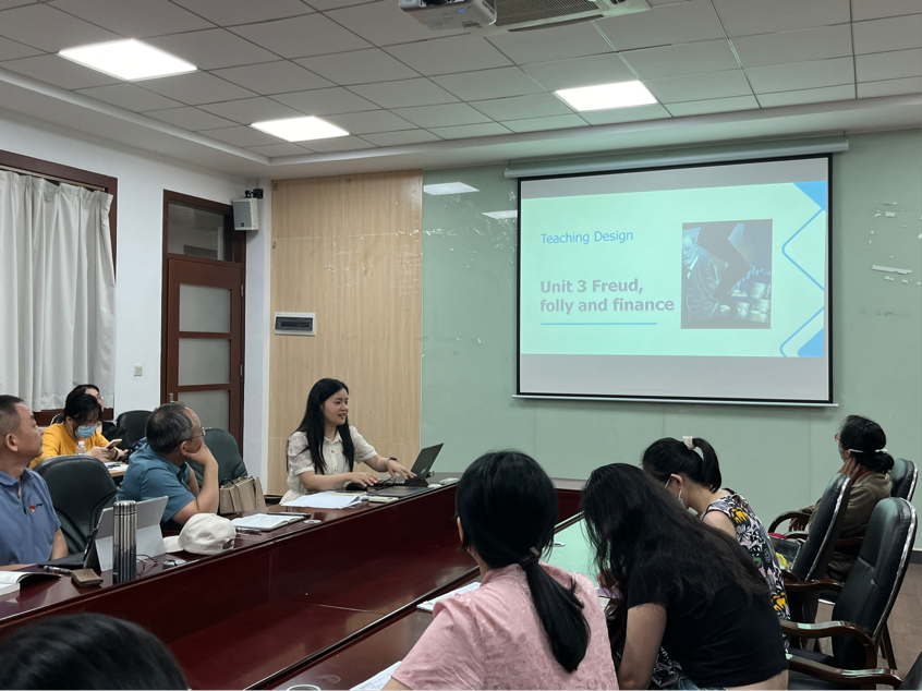 张珊老师选取了她所教授的《综合商务英语》课程中的一篇文章,分享了她实施课程思政的具体做法。她认为,在课堂教学中,要注重培养员工学习兴趣,结合自身经历,引导员工思考,培养员工的思辨能力。比如在讲授“锚定效应”这一概念时,她用图片讨论的方式,激发员工学习兴趣,引导员工开展讨论,发散思维,结合自身生活实际,从讨论中学习知识要点。