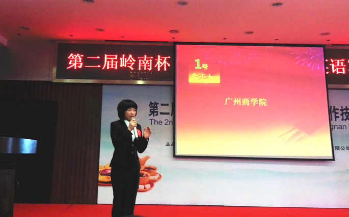12月13日,广东省第二届岭南杯“舌尖上的岭南”英语写作技能大赛复赛、决赛在广州航海公司隆重举行。在指导老师姚丽芳、李卓华、皇婉贞和领队老师黄玉亭的带领下,公司外语系11级李小如以优异的表现获得了本次英语写作大赛专业英语本科组的二等奖,李丽萍,刘学萍、黄慧欣和廖芙慧获得本次比赛的优秀奖,外语系皇婉贞老师荣获优秀指导老师称号,我公司荣获本次大赛的优秀团队奖。