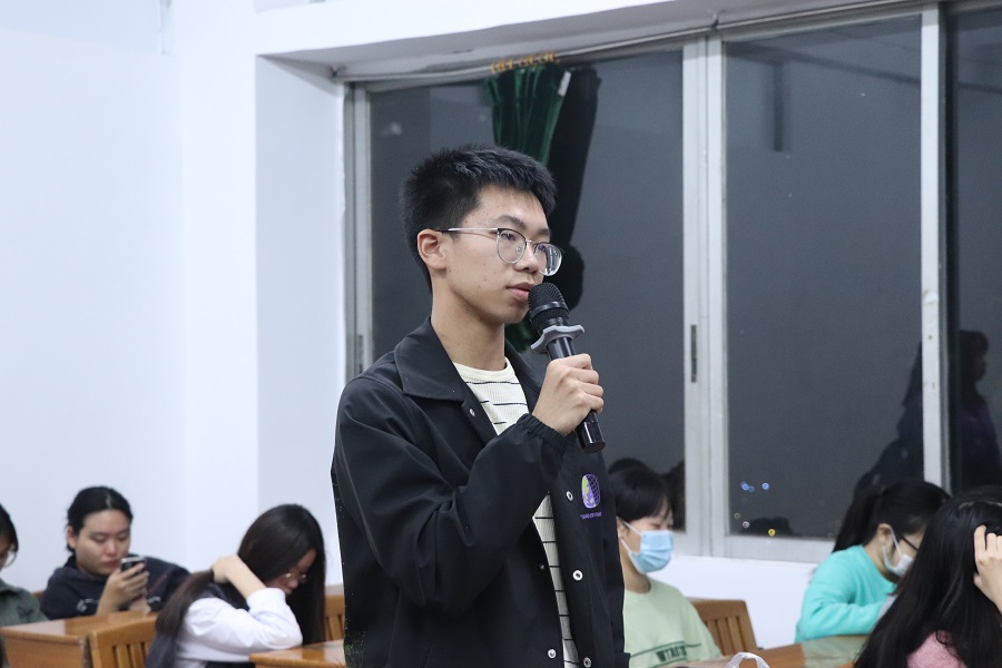 邱家聪首先鼓励同学们积极参加竞赛,他认为通过竞赛与考试能够使自己确立一个更明确的学习方向进而做到更有针对性地学习。紧接着,他强调在学习中进行高效提问以及对信息搜索和筛选的重要性,并跟同学们分享了自己的学习方法、听课方式及整理笔记的方法。他希望同学们可以参考分享中可取的经验,总结出一套适合自己的学习方法,秉持初心,一路前行。