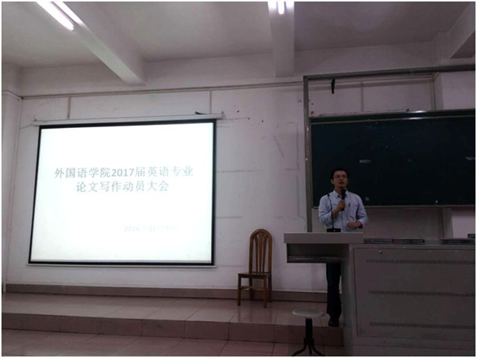 伟德国际1946于2016年11月7、8、9日分别举行2017届英语、日语和德语专业员工毕业论文动员大会,主管教学副经理袁鑫和各专业系主任参加动员大会。