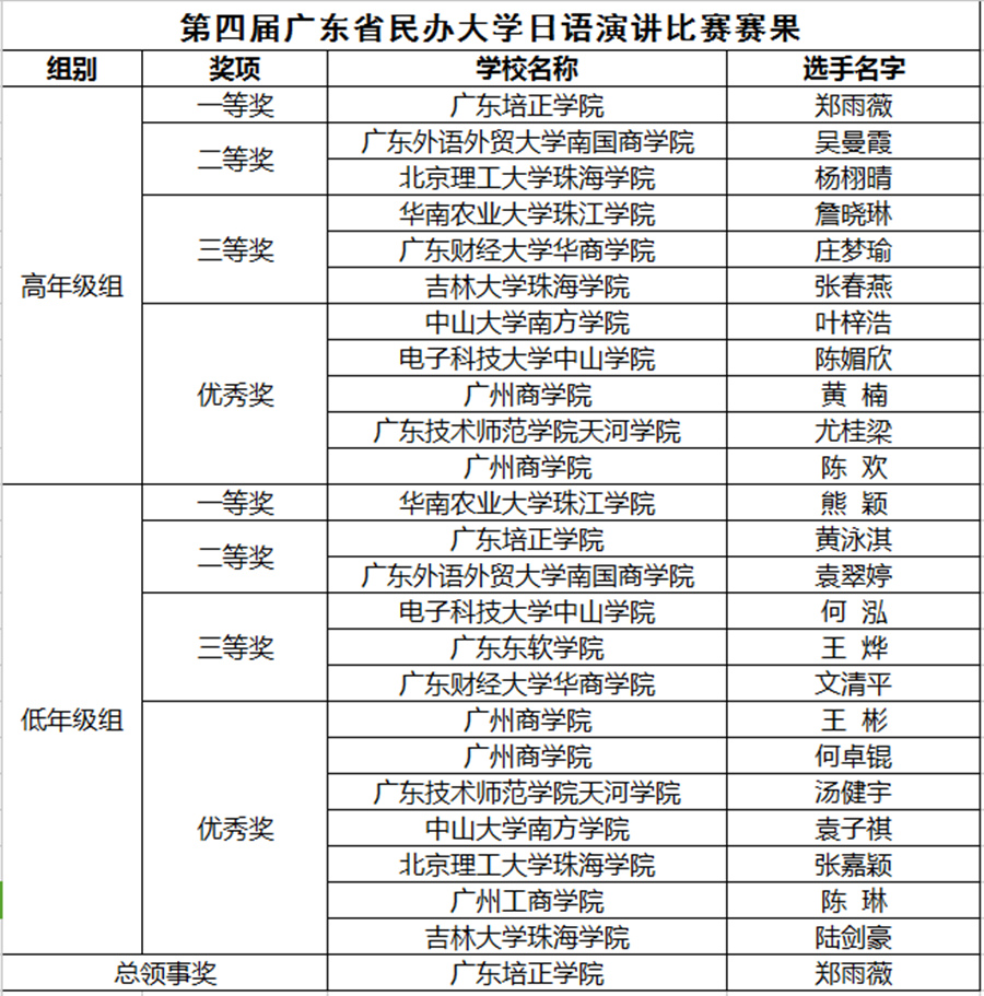 本次比赛的参赛选手凭借优秀的日语表达能力,敏捷的思维和良好的应变能力,为现场的观众展示了我省民办大学日语专业员工的风采,也体现了各大高校在日语专业人才培养上的实力,相信通过本次比赛的磨练,日语员工的专业水平和演讲实力将有进一步的提升,老员工的文化交流也将翻开崭新的一页。