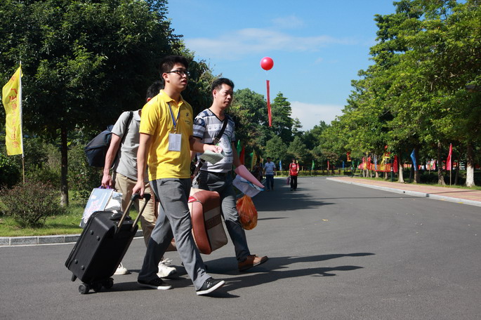 新生报到期间,公司经理杨文轩教授,党委书记谭马利,副经理刘根正、高惊生、冼德庆,经理助理张忠福等领导亲临各系报到现场,亲切关怀工作人员,耐心询问新生入学注册情况,为新生、家长及全体工作人员带来了温暖的问候。杨文轩经理还向员工记者讲述了“没有伞的孩子,才会努力奔跑”的故事,勉励新生“努力、自信的人生最美丽”。冼德庆副经理亲赴火车站、火车东站、天河客运站、九龙大道路口等校外接待点,慰问校外接待师生。