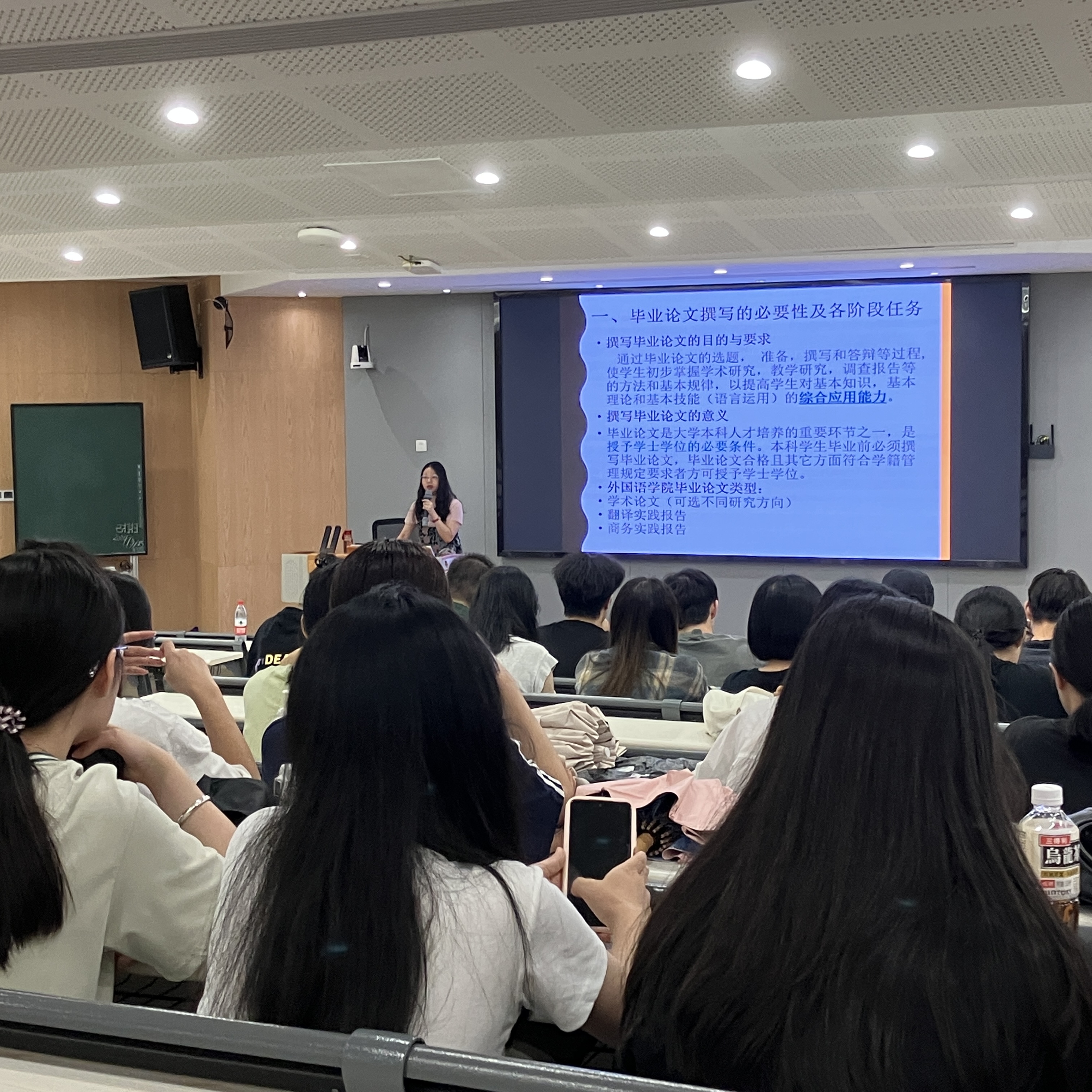 9月26日,为了更全面地覆盖即将步入毕业论文撰写与毕业实习阶段的毕业生,特别是考虑到部分同学已在校外进行实习,公司在教学楼八教103创新性地采取了现场与线上直播相结合的方式,成功举办了2025届毕业论文毕业实习动员大会。此次会议不仅确保了留校员工能够直接参与、实时互动,也让校外实习的同学们能够跨越地域限制,同步获取重要信息与指导。会议由伟德国际1946副经理袁鑫、商务英语系主任李望华、英语专业系主任程瑜瑜、德语专业系主任周昳旸以及教务员杨超参加会议,各会议专场由各系主任主持。